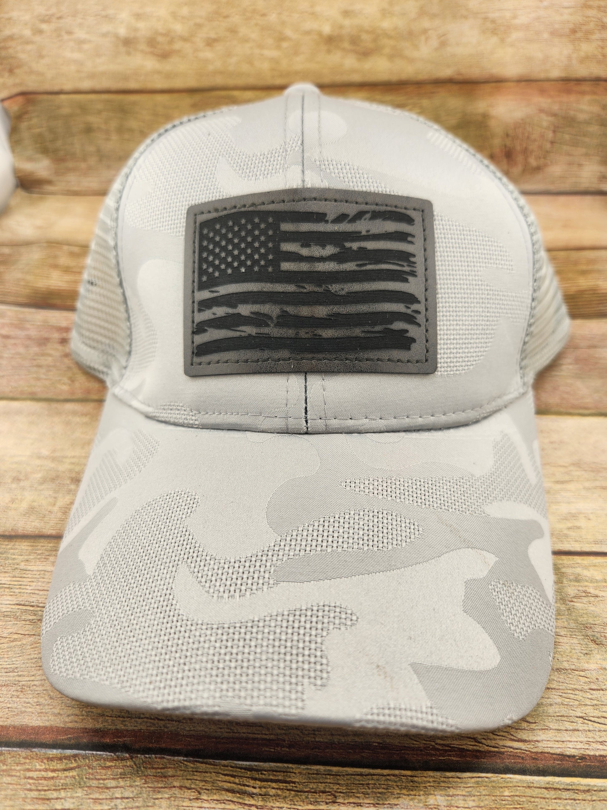Show your patriotism with this ponytail, baseball cap with leatherette patch flag