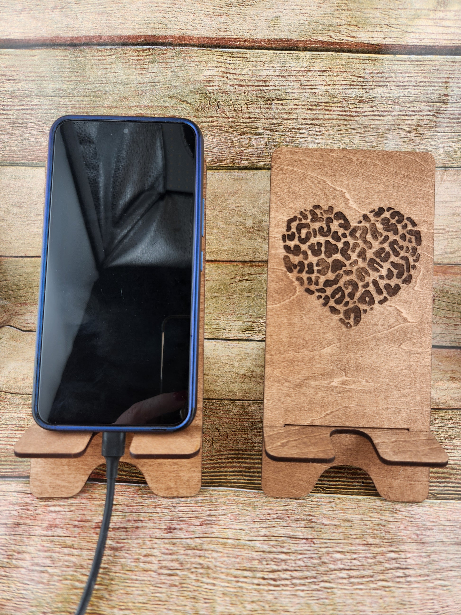 This adorable cell phone stand would be a great addition to your nightstand or desk. There is space to add your charging cord.