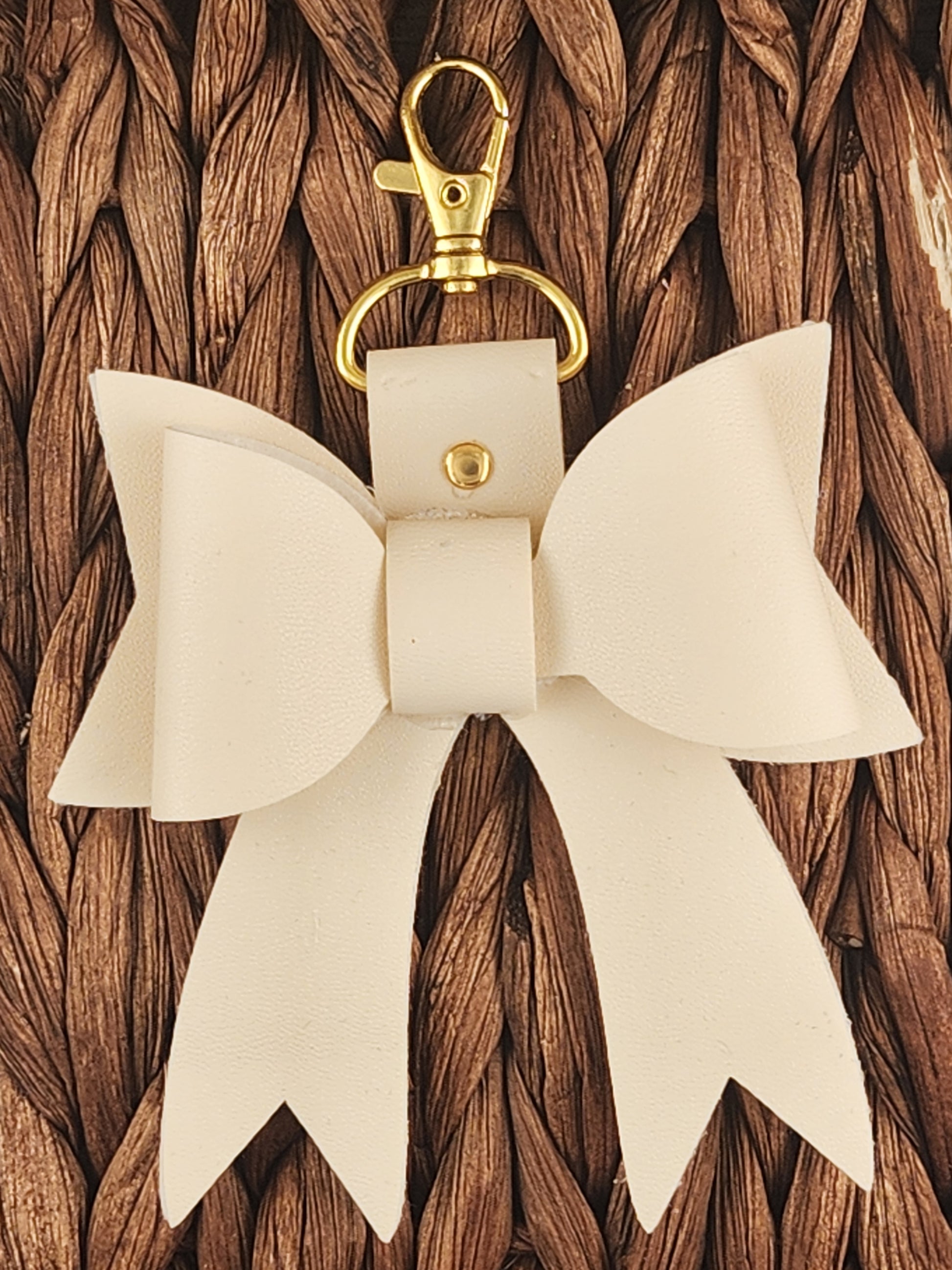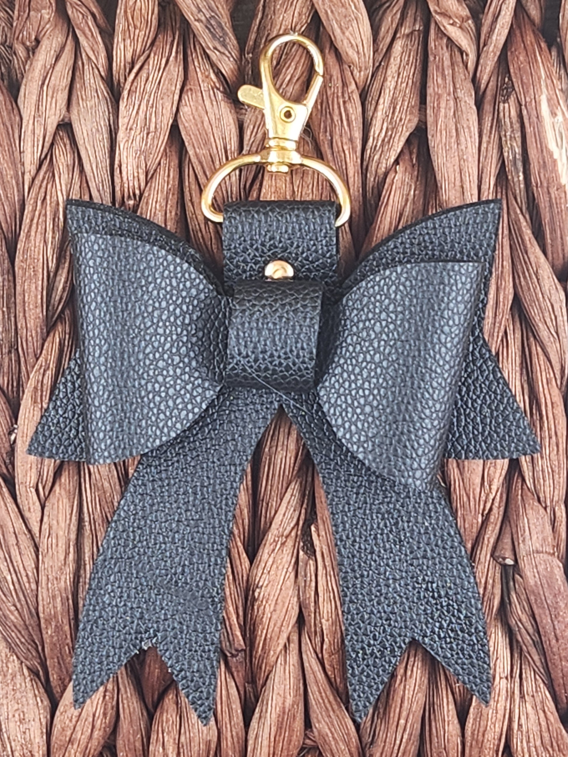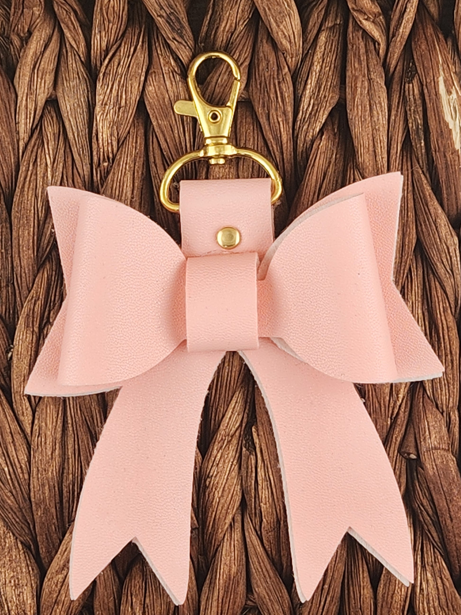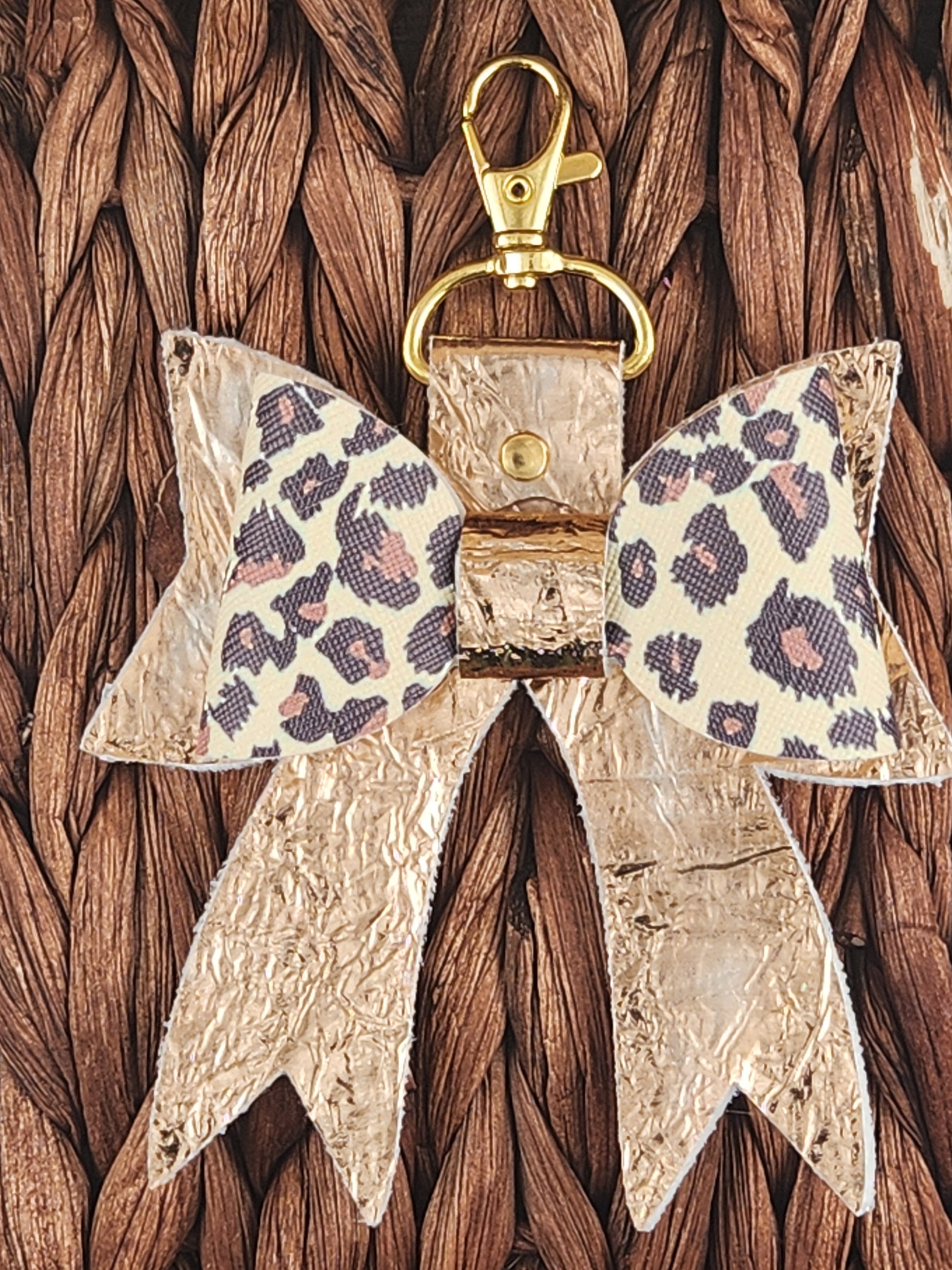 Adorable faux leather bow charm makes a perfect addition to your favorite purse. Choose from 11 different patterns. (a) Gold Bow with Leopard Print Tails (b) Rose Gold Bow with Leopard Print Tails (c) Leopard Bow with Gold Tails (d) Leopard Bow with Rose Gold Tails (e) Tan Pebble (f) Cream Smooth (g) Tan Smooth (h) Pink Smooth (i) Pink Gingham (j) Yellow Stripe (k) Black Pebble