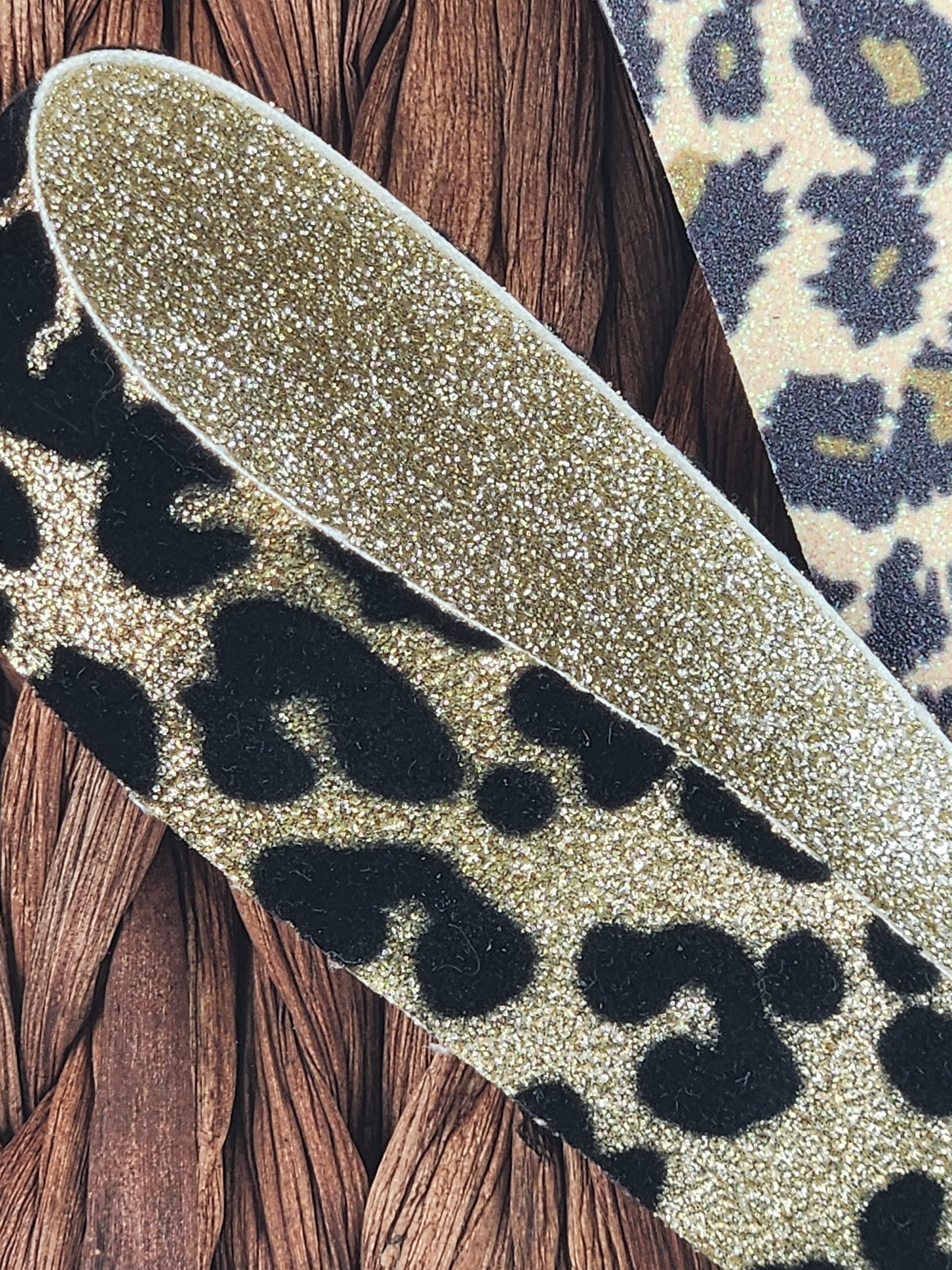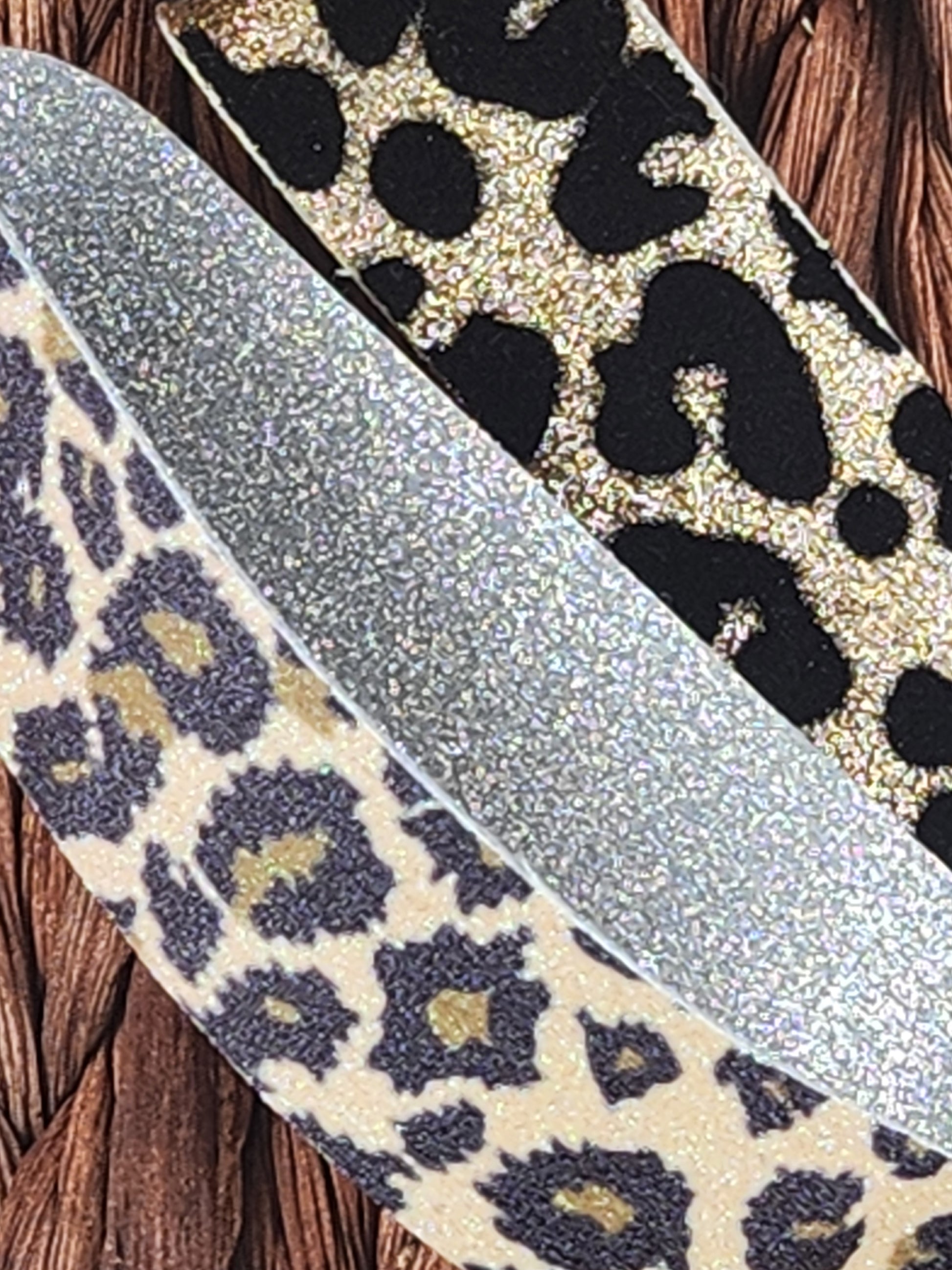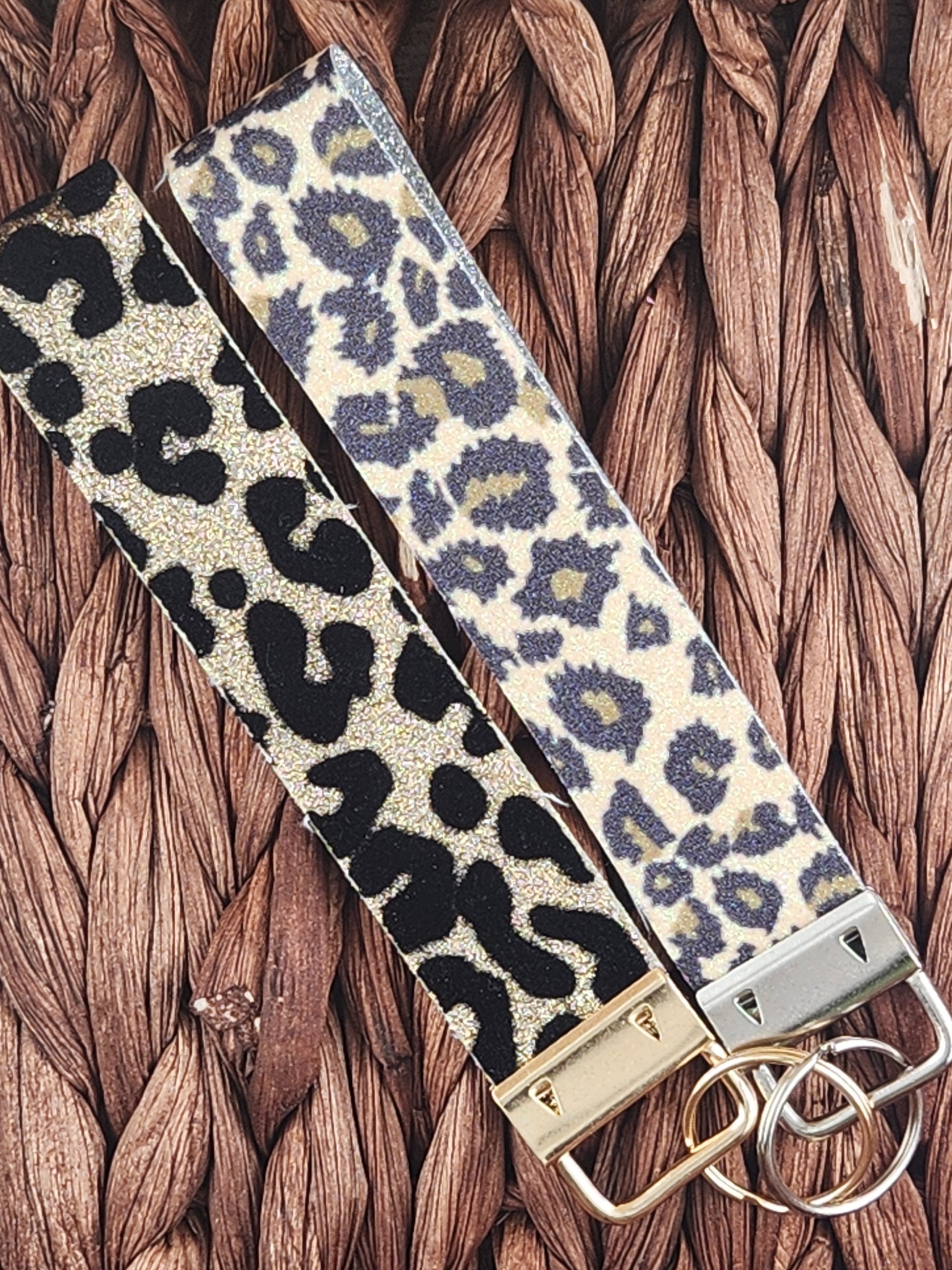 Leopard print and Glitter Faux Leather Wristlet Keychain. Perfect for that someone special in your life. Choose from Gold or Silver