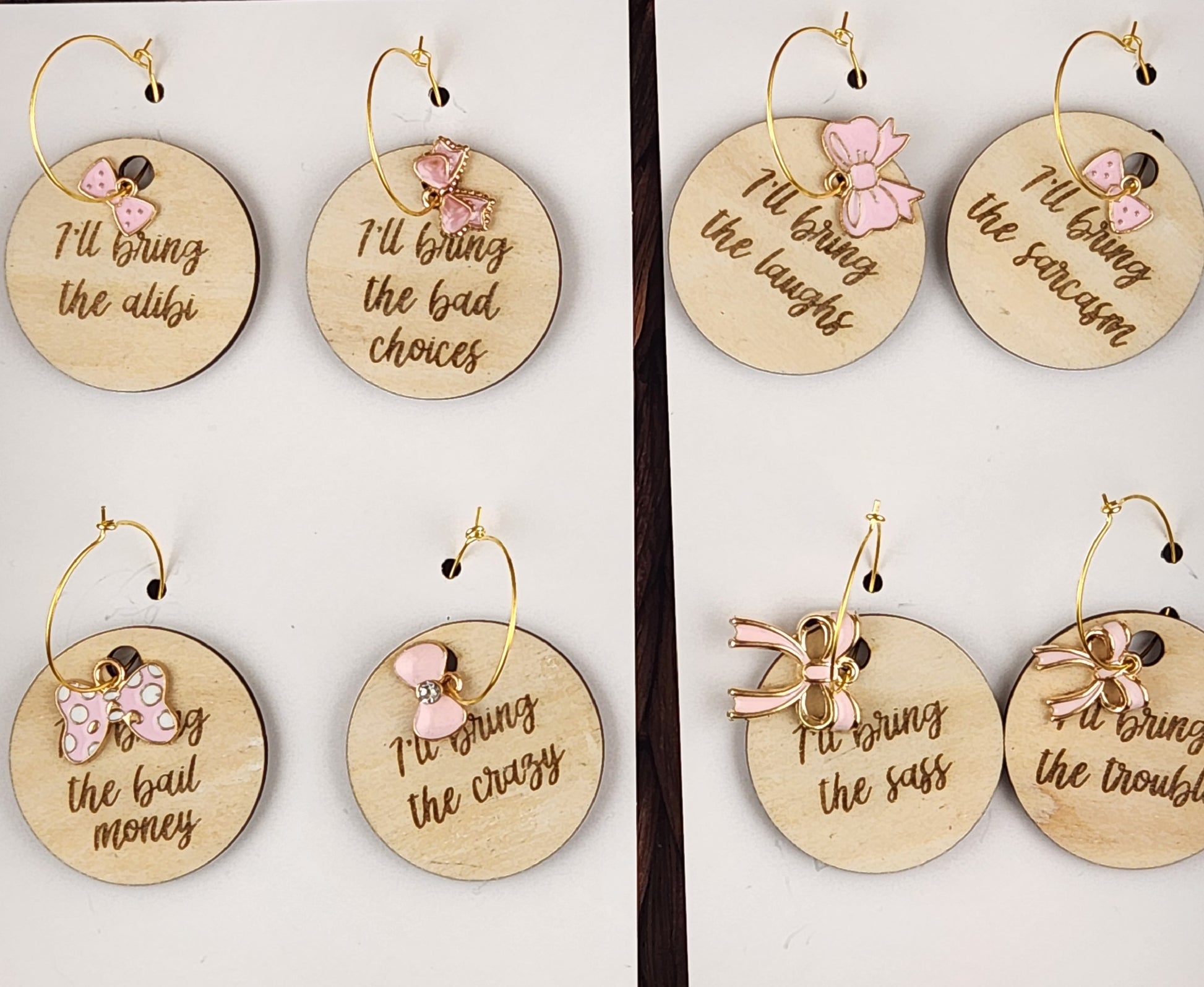 Cute and fun way to add a little something to your wine glass. (charms may vary - the butterfly and cat charms are very limited edition) Scroll through all the pics. This is perfect for a girls weekend or bachelorette party